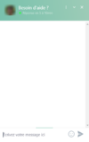 Lorsque l’on clique sur la fonctionnalité chat, la rubrique de contact s’ouvre. Il suffit d’écrire son message dans le champ « Ecrivez votre message ici » et de cliquer sur le logo d’envoi associé. Il est possible également d’envoyer une photo en réalisant un glisser-coller du fichier dans le champ « Ecrivez votre message ici ».
