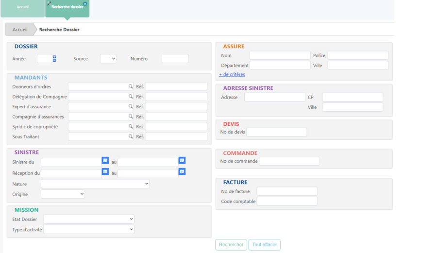 La recherche jumelle ou recherche dossier permet d'effectuer une recherche détaillé et d'obtenir un résultat ou une liste de résultat.