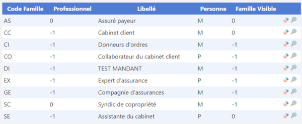 === Familles/Fonction=== | === Familles/Fonction=== | ||